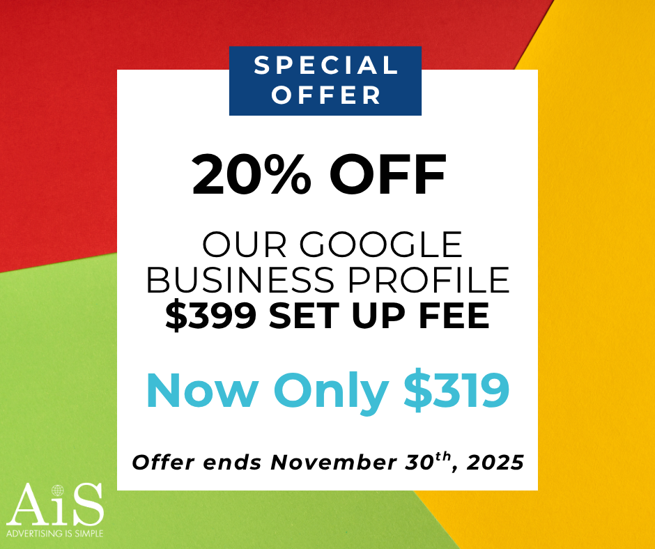 Unlock more local visibility and get found where customers are searching. AIS is offering 20% off our Google Business Profile set-up fee this month, now only $319. Claim the offer before it ends November 30th, 2025. Please enable JavaScript in your browser to complete this form.Please enable JavaScript in your browser to complete this form.Name *Email *Comments or QuestionsPhoneSubmit